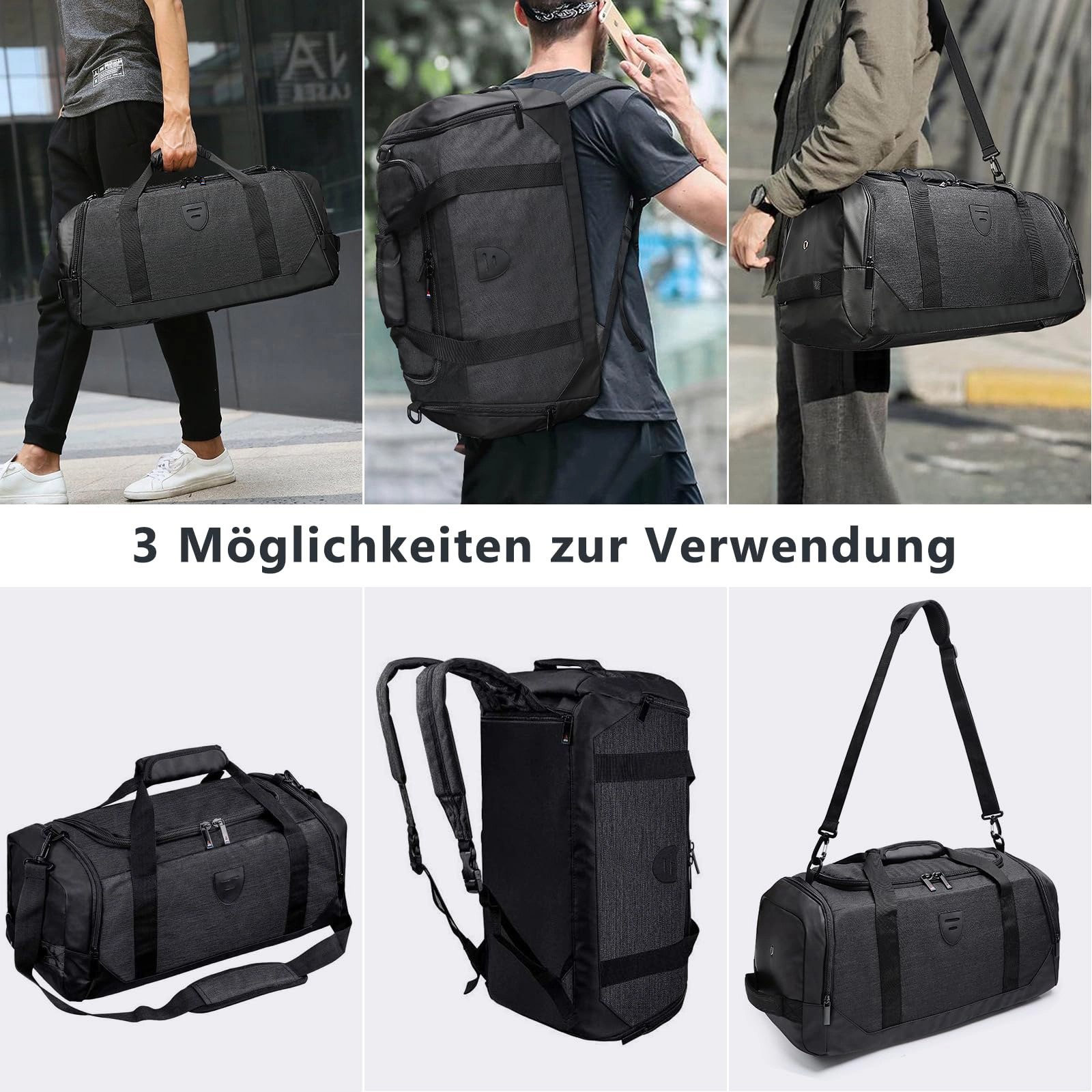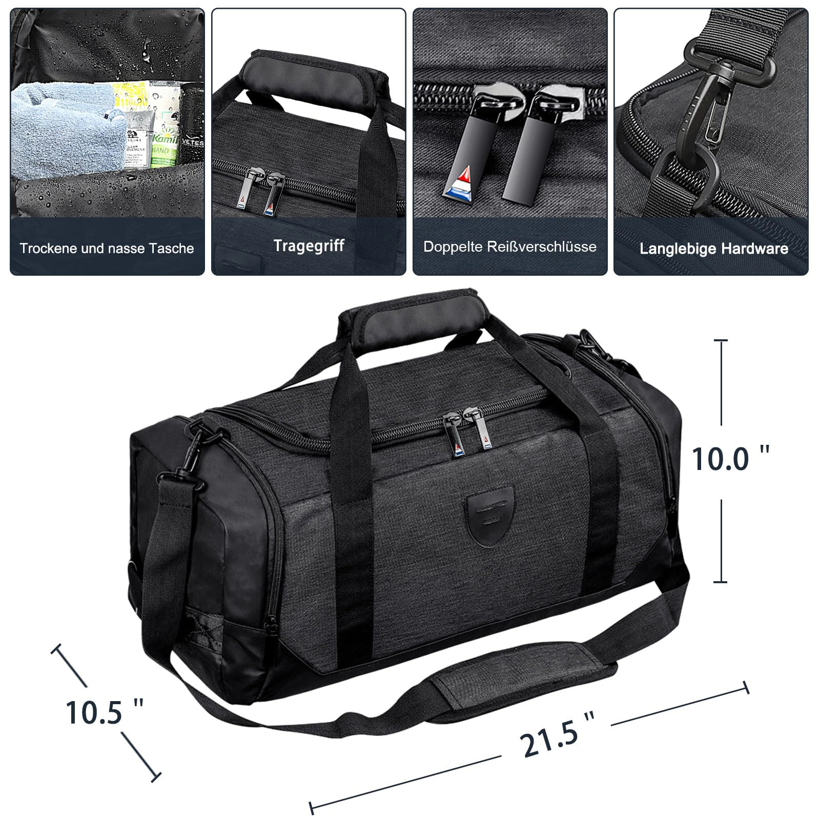 2. Getrenntes Fach für Schuhe und Nasstasche: Das separate Schuhfach ist mit einem Luftloch versehen, damit die Sporttasche sauber und belüftet bleibt. Die maximale Beladungsgröße des Fachs beträgt 16. Das Nassfach mit wasserdichtem Material kann Ihre verschwitzte Kleidung aufbewahren, damit das Hauptfach trocken bleibt. Die Tasche kann als Sporttasche, Übernachtungstasche, Wochenendtasche und Reisetasche verwendet werden.