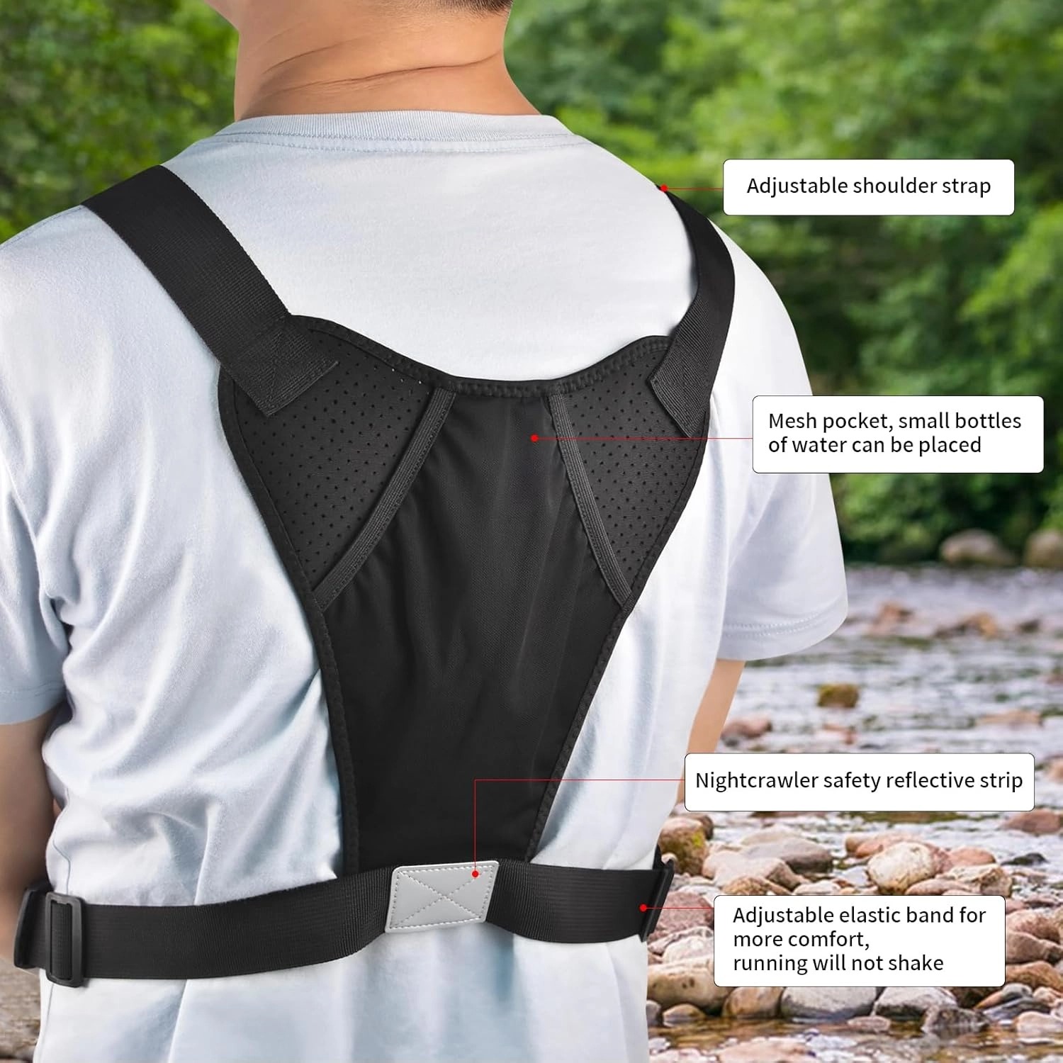 • Anatomical X-harness (weight-distribution tech)