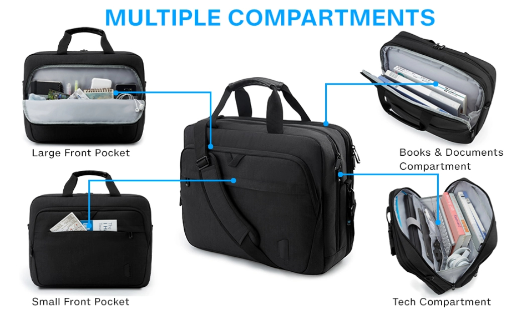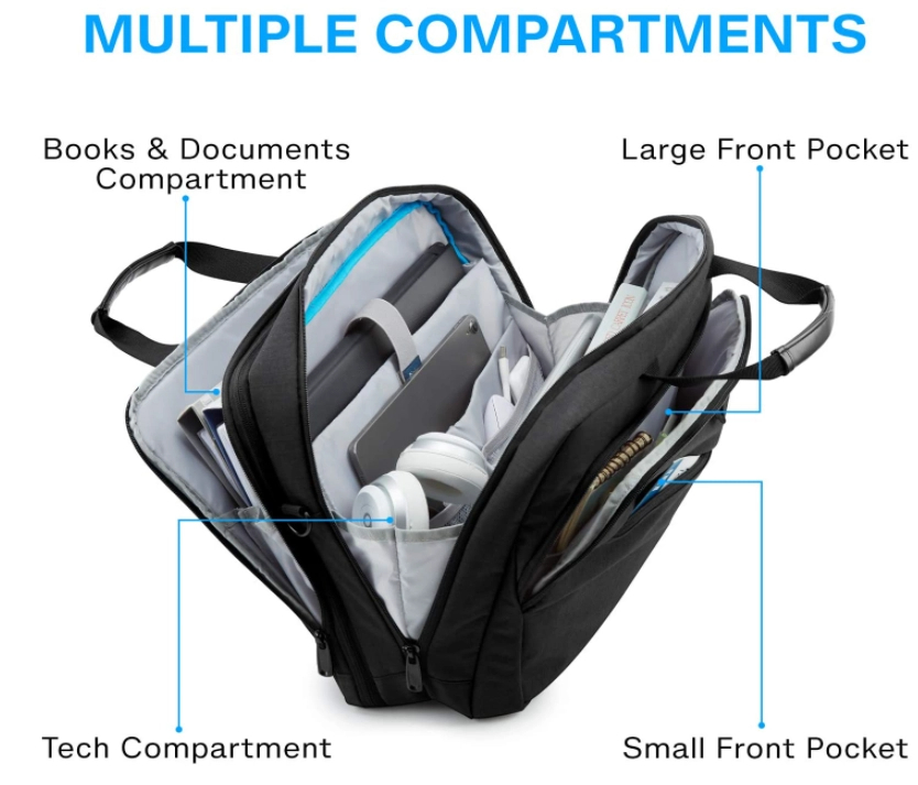 ΕΞΕΛΙΞΗ & ΠΟΛΛΑΠΛΕΣ ΣΥΝΑΡΜΟΛΟΓΗΣΕΙΣ: το φερμουάρ επέκτασης το καθιστά πιο ευέλικτο και ο χαρτοφύλακας φορητού υπολογιστή μπορεί να μετατραπεί σε μεγάλο σάκο όταν είναι απαραίτητο. Μέχρι και 4 διαμερίσματα μπορούν να καλύψουν καλά όλες τις ανάγκες σας. Το μεγάλο διαμέρισμα τεχνολογίας μπορεί να φιλοξενήσει φορητούς υπολογιστές μεγέθους έως και 17,3 ιντσών. Δύο μπροστινές τσέπες σας επιτρέπουν να τοποθετείτε τα καθημερινά απαραίτητα με οργανωμένο τρόπο. Η επεκτάσιμη θήκη εγγράφων μπορεί να αποθηκεύσει τους φακέλους σας A4, τα περιοδικά, τα ρούχα ή μια ομπρέλα.