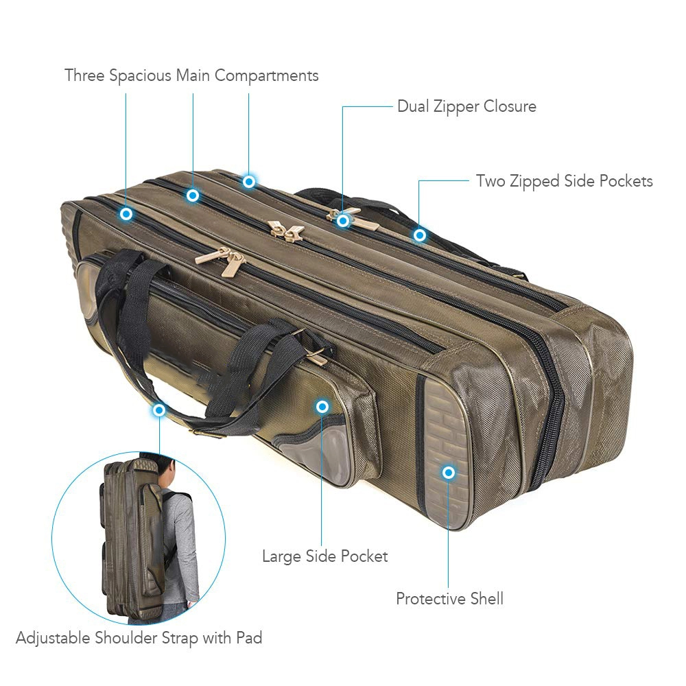 1. SPACIOUS CAPACITY: This fishing bag includes 3 spacious main compartments with dual zipper closure, allowing access to your fishing tackle.3 zipped small pockets provide additional storage for small items., offers large capacity for your fishing tackle and keeps it neat and organized.
