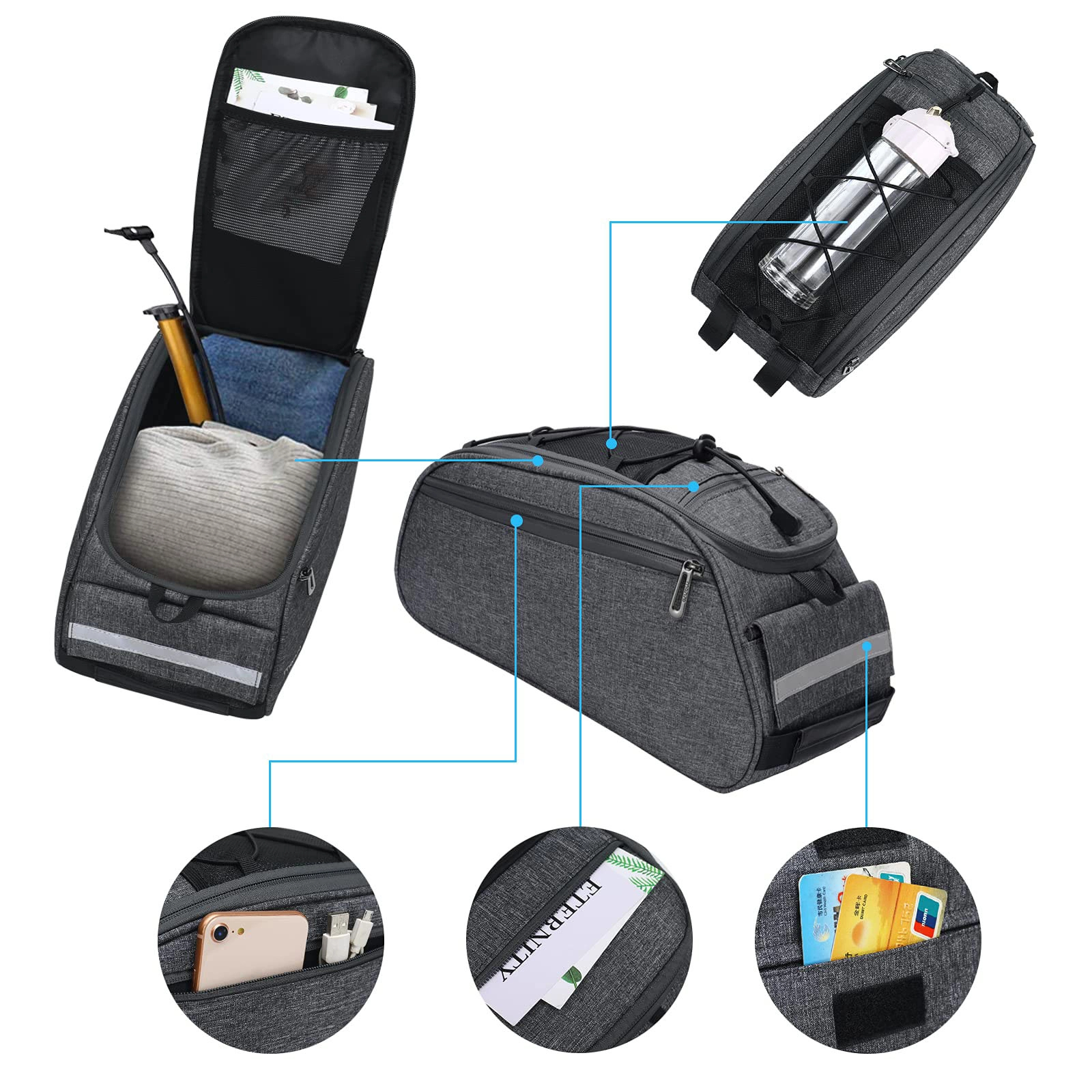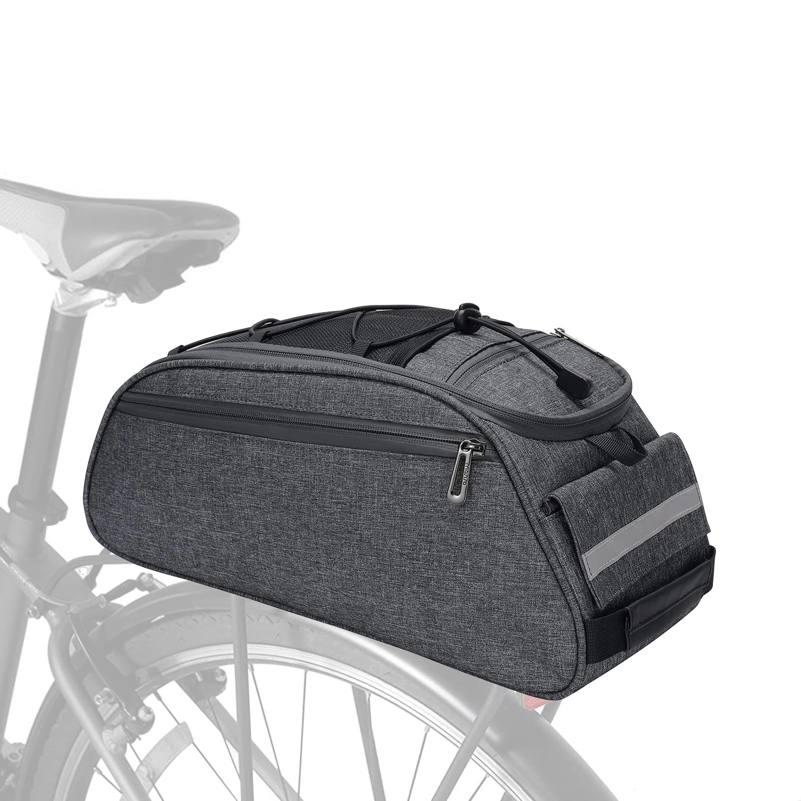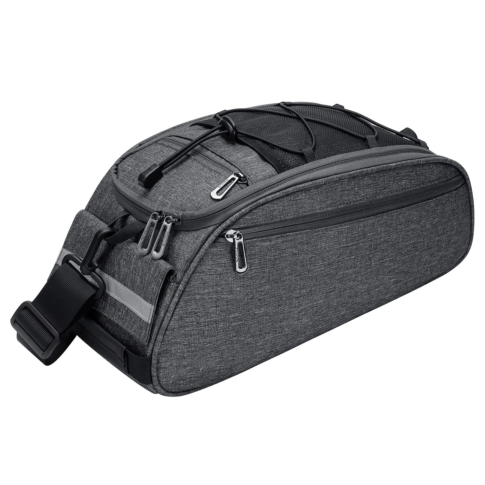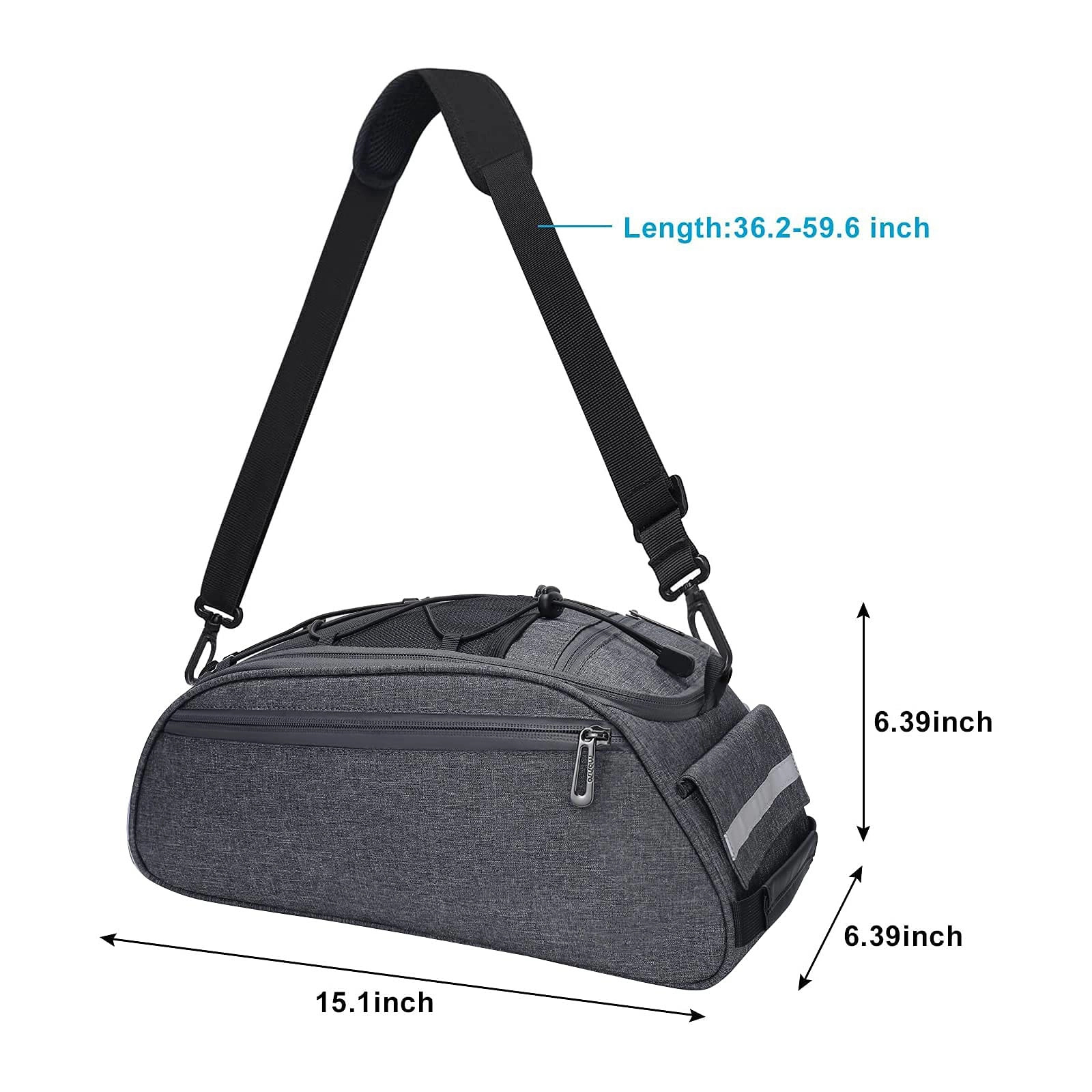 2. Made of 600D snowflake polyester material, effectively prevents rain, water, mud, and dust from entering this bag quickly. 4 hook-and-loop fastener straps are stable enough to hold this bike bag on the backseat. Make sure it will not move around even though you’re riding on a rugged road.