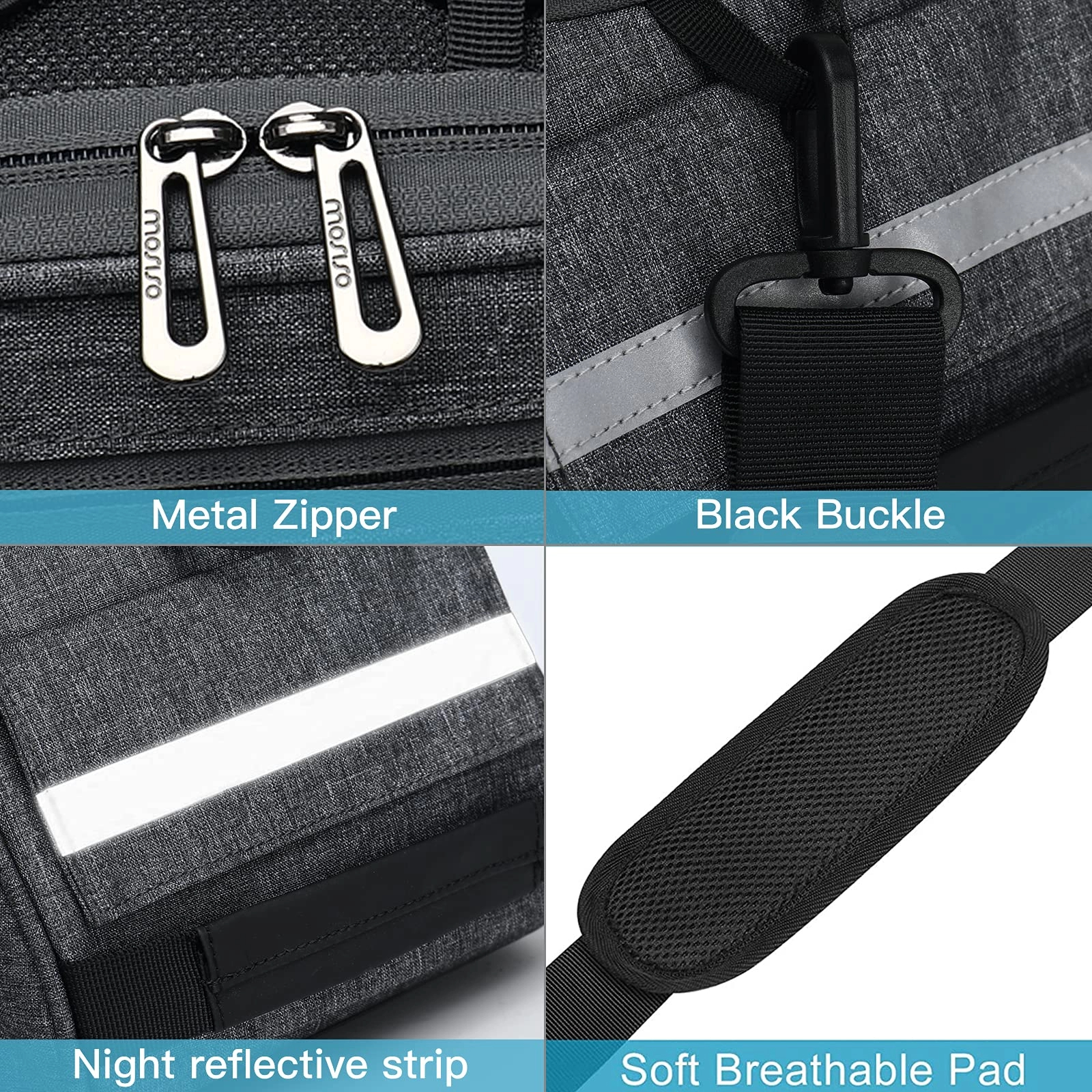 3. Flexible satchel shoulder strap varied from 36.2 to a maximum of 59.6 inches can be adjusted loosely or tightly, to perfectly fit your body. A handle design on top makes it easy to carry this bag around in comfort. You can alter how to carry depending on your needs. Both of the side bag has enough space to put your belongings when cycling outside.