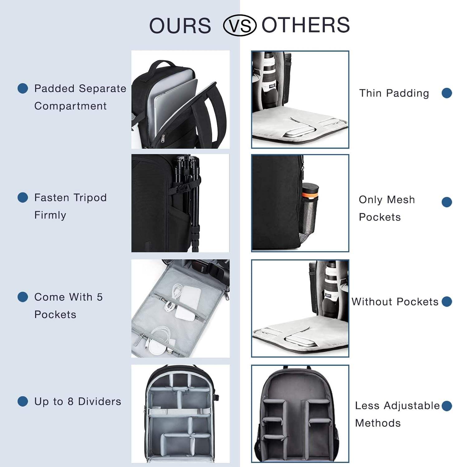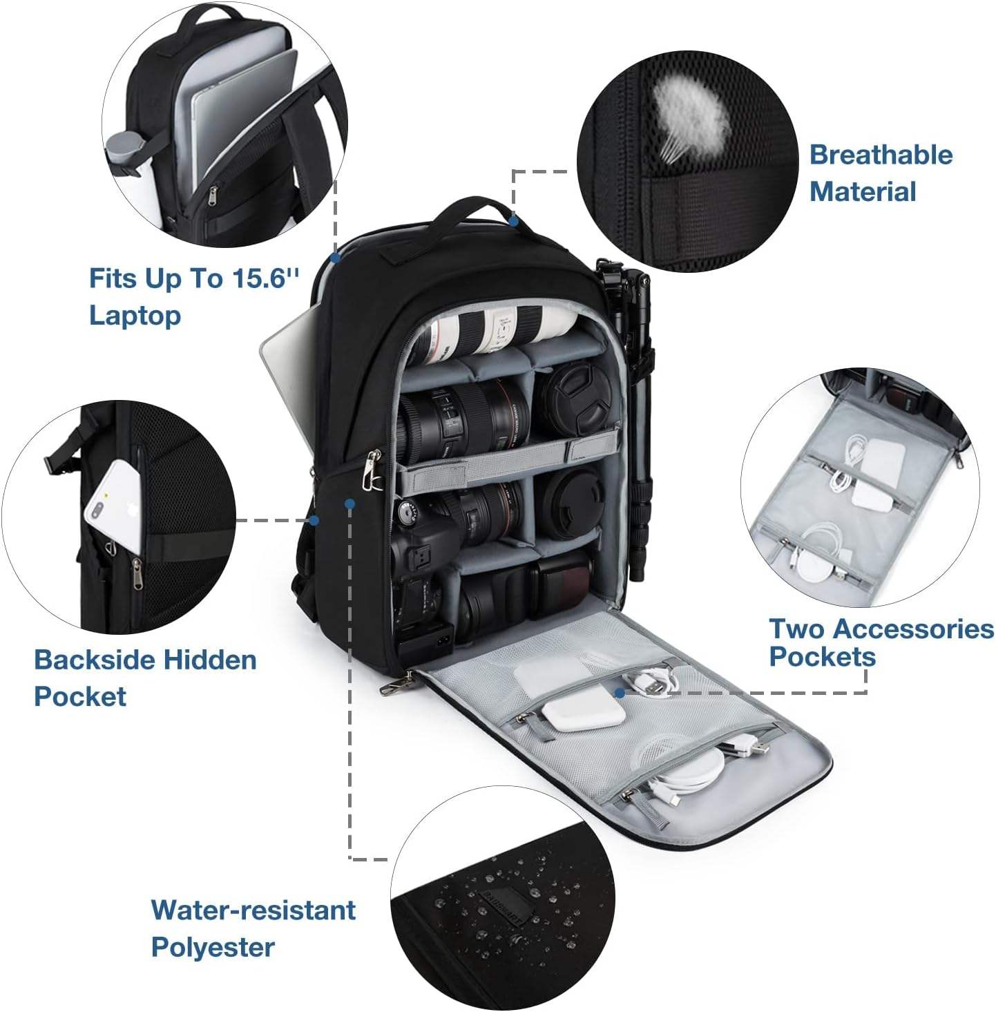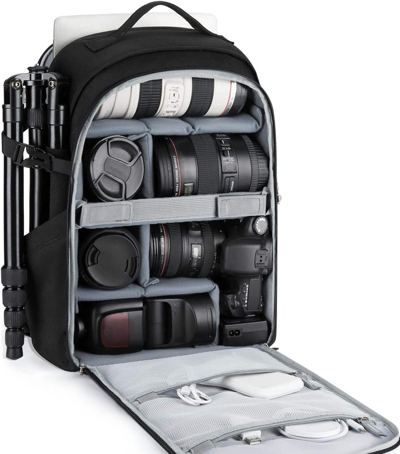 1. DESIGN COMPATTO MA CAPACITÀ SUFFICIENTE Questa borsa per fotocamera e obiettivi offre 7 vani con 6 divisori imbottiti e rimovibili e 1 cinghia di sicurezza, che possono contenere 1 fotocamera e 6 obiettivi, mentre è possibile autocostruirsi lo spazio interno rimuovendo i divisori spessi in base alla propria attrezzatura. All'interno, è presente una custodia dedicata per un laptop da 13″ o un tablet/iPad. Zaini fotografici professionali TARION per fotografi