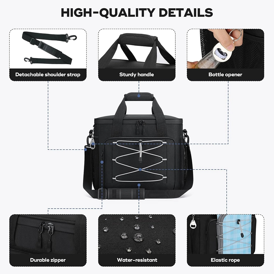 Jako wiodący chiński producent toreb na lunch i fabryka toreb wodoodpornych, produkujemy wytrzymałe wodoodporne torby chłodzące 600D Oxford dla globalnych dystrybutorów żywności. Nasza firma produkująca torby na lunch zapewnia: