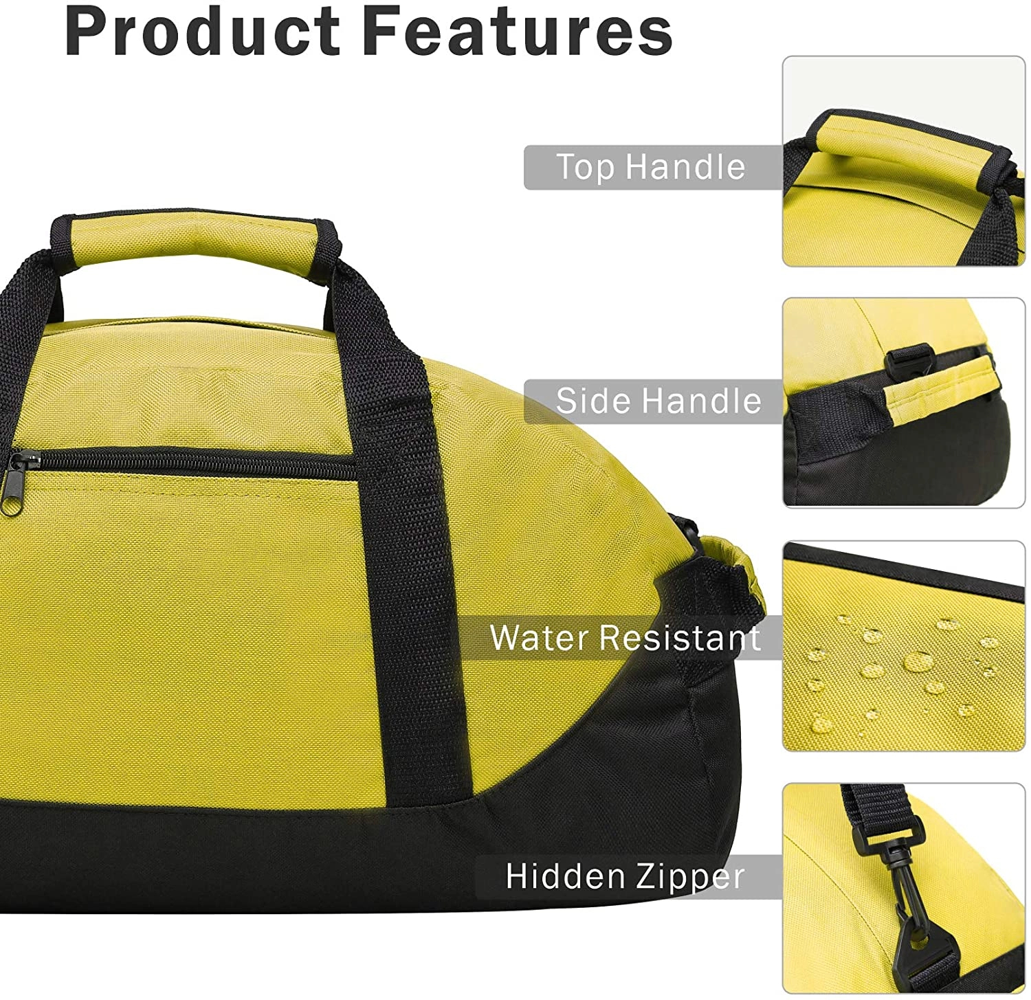 This duffel bag is suitable for the Gym, travel, and other sports events. Sports duffel bag great for gym and traveling; can be used as a shoulder bag, crossbody bag (depending on body size), or hand-held pack with adjustable & removable straps carry-on bag.